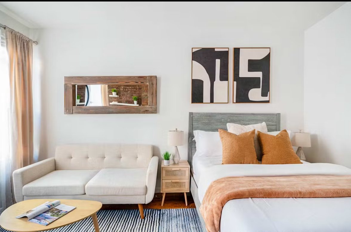The apartment itself is super chic, modern, and sophisticated with a New York style and vibe. It is quiet and comfortable with added touches to make your stay more enjoyable, such as a 40" flat screen TV, Free Wifi, linens, plush towels, and a fully stocked kitchen with a refrigerator, oven range, microwave-oven, toaster, and coffee maker. There is also a washer / dryer in the unit for your convenience, a hair dryer, and an iron/ironing board.